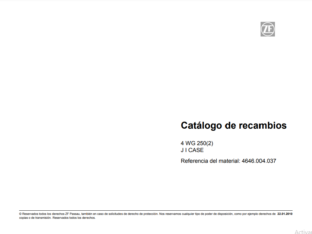 Catalogo de Recambios Servotransmisión ZF 4 WG 250 (2) J I CASE - 4646.004.037
