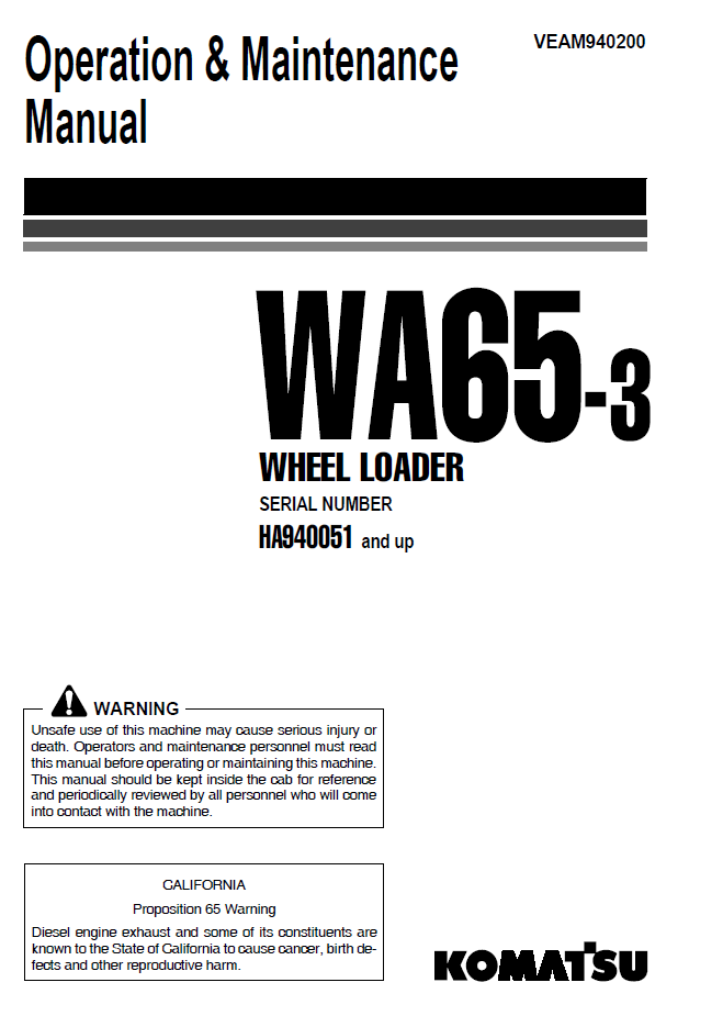 Manual de Operación y Mantenimiento Cargador Komatsu WA65-3 - HA940051