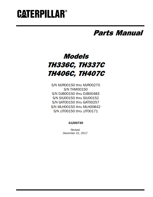 Manual de Partes Telehandler Caterpillar TH336C- TH337C- TH406C- TH407C