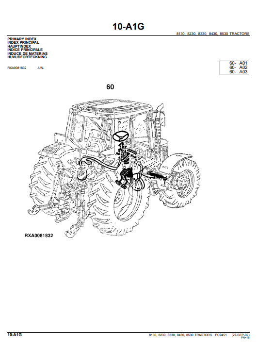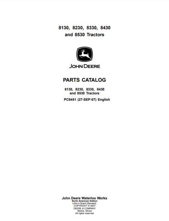 Manual de Partes Tractores John Deere 8130, 8230, 8330, 8430, 8530 - PC9451