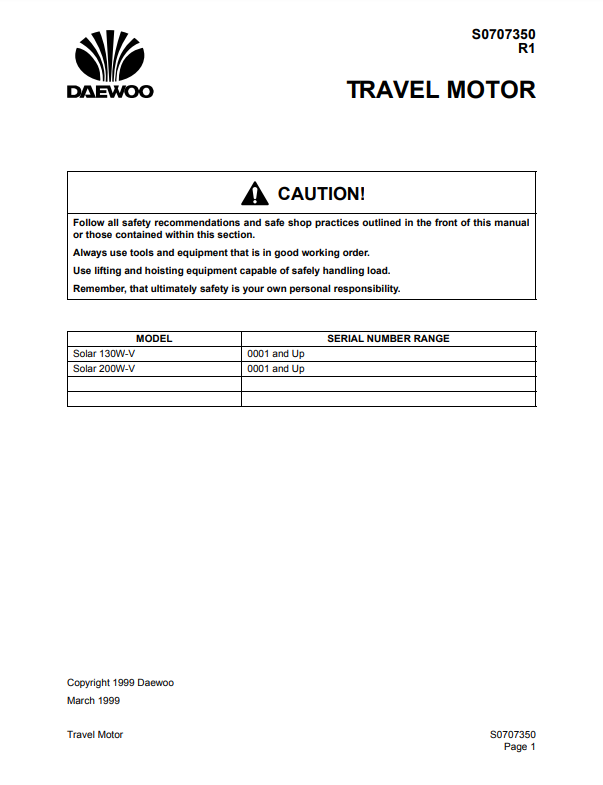 Manual de Reparación Bomba Principal de Desplazamiento Daewoo Solar 130W-V, Solar 200W-V