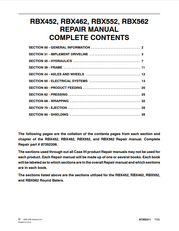 Manual de Reparación Empacadora Circular Case RBX452, RBX462, RBX552, RBX562
