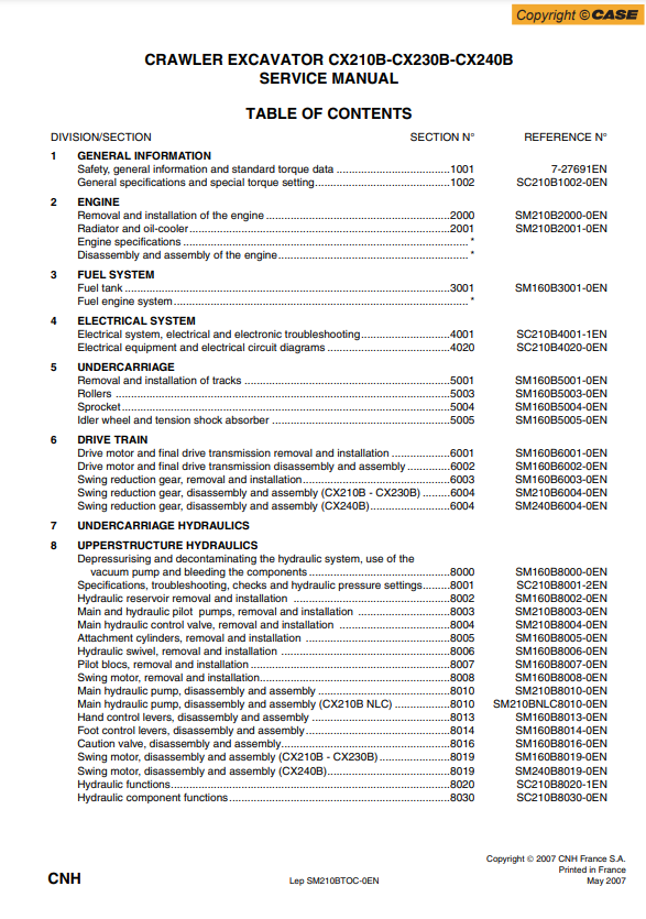 Manual de Reparación Excavadora Case CX210B, CX230B, CX240B