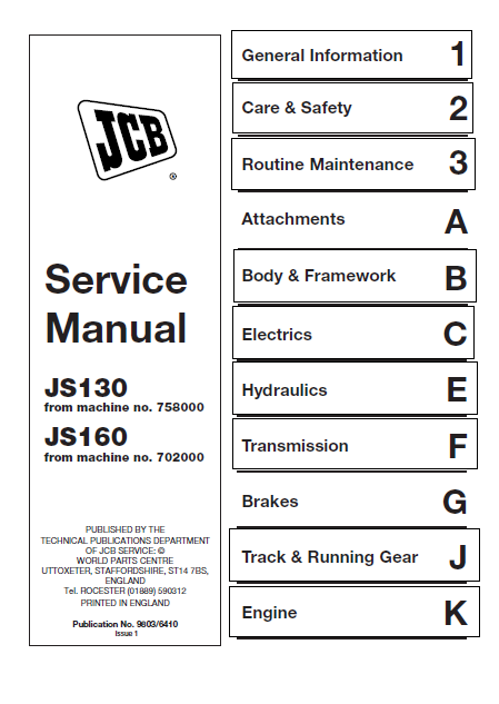 Manual de Reparación Excavadora de Orugas JCB JS130, JS160