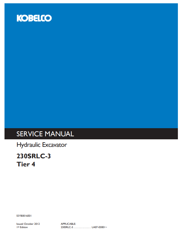 Manual de Reparación Excavadora Kobelco 230SRLC-3 Tier 4