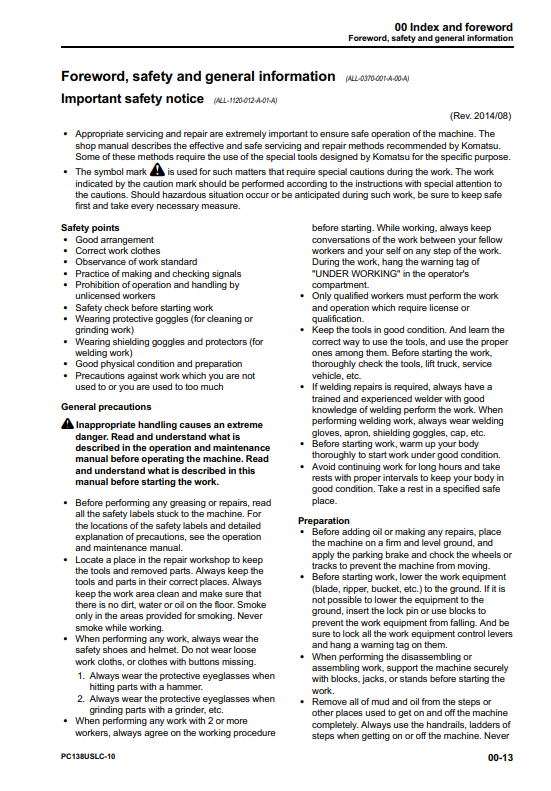 Manual de Reparación Excavadora Komatsu PC138USLC-10