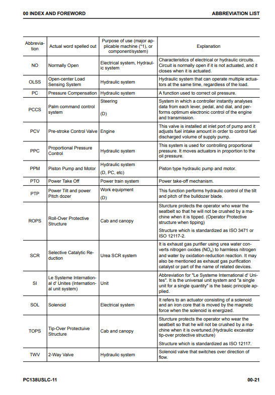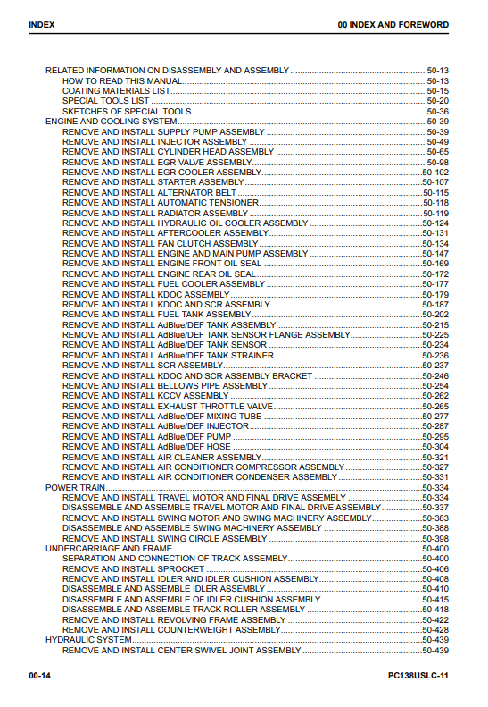 Manual de Reparación Excavadora Komatsu PC138USLC-11