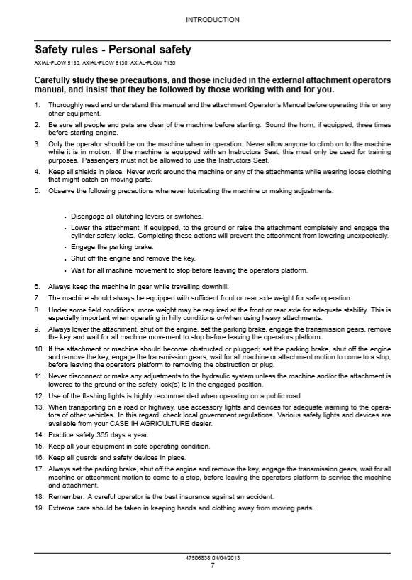 Manual de Reparación Flujo Axial Cosechadora Case 5130, 6130, 7130