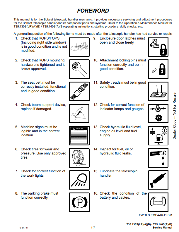 Manual de Reparación Manipulador Telescopico Bobcat T35.130SA, T35.130SLPA, T35.140SA, T35.130SB, T35.130SLPB, T35.140SB