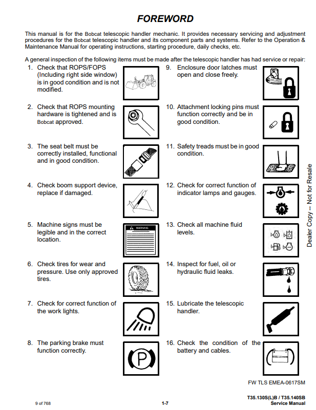 Manual de Reparación Manipulador Telescopico Bobcat T35.130SB, T35.130SLPB, T35.140SB