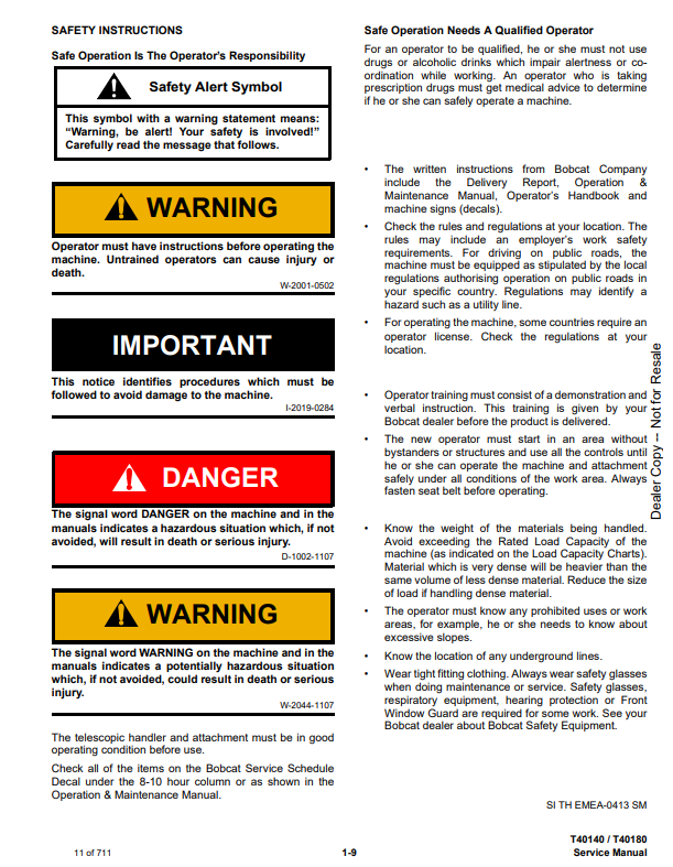 Manual de Reparación Manipulador Telescopico Bobcat T40140, T40180