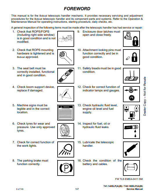 Manual de Reparación Manipulador Telescopico Bobcat T41.140SLPA, T41.140SLPB, T40.180SLPA, T40.180SLPB