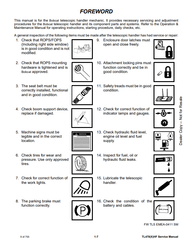 Manual de Reparación Manipulador Telescopico Bobcat TL470(X)HF