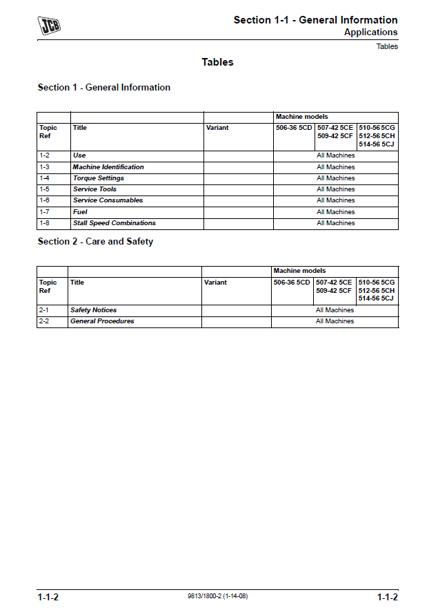 Manual de Reparación Manipulador Telescopico JCB 506-36, 507-42, 509-42, 510-56, 512-56, 514-56
