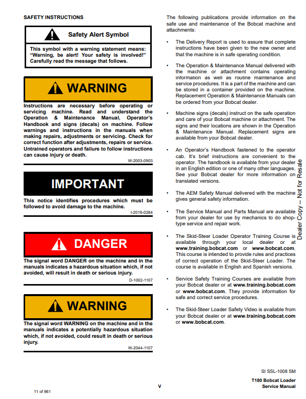 Manual de Reparación Minicargador Deslizante Bobcat T180 Turbo