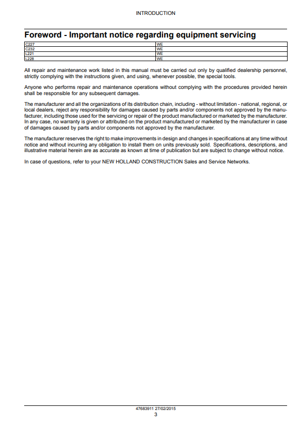 Manual de Reparación Minicargador New Holland L221, L228, C227, C232
