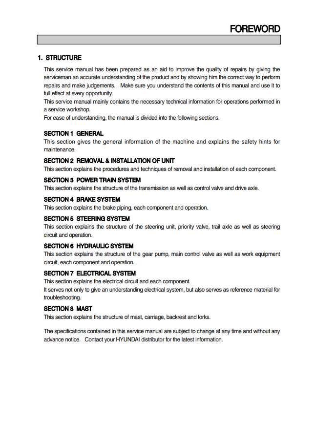 Manual de Reparación Montacargas Hyundai 80D-7E