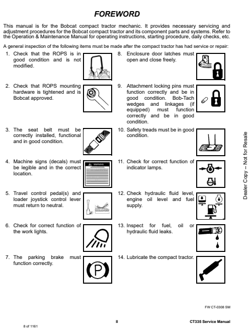 Manual de Reparación Tractor Compacto Bobcat CT335