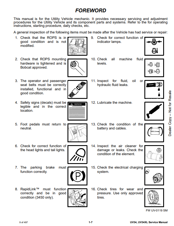 Manual de Reparación Vehiculo Utilitario (carro de golf) Bobcat UV34, UV34XL