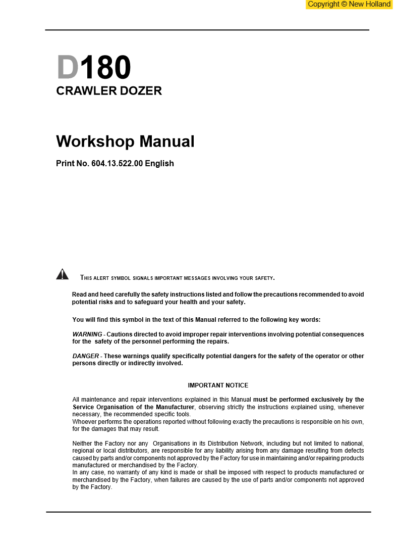 Manual de Servicio Bulldozer New Holland D180