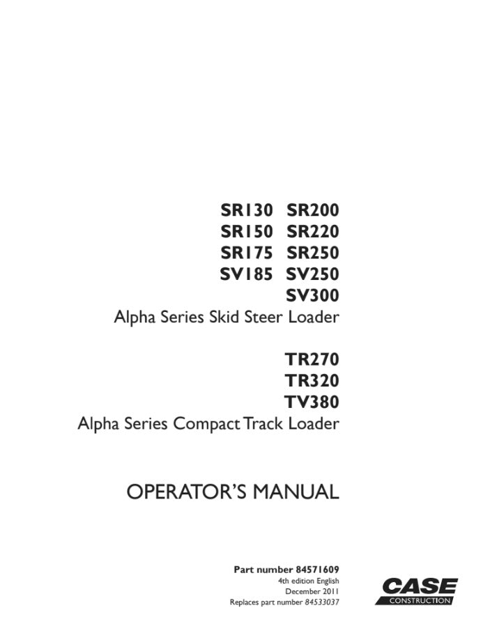 MANUAL DE SERVICIOS MINI CARGADOR SR130 SR200 SR150 SR220 SR175 SR250 SV185 SV250 SV300 TR270 TR320 TV380