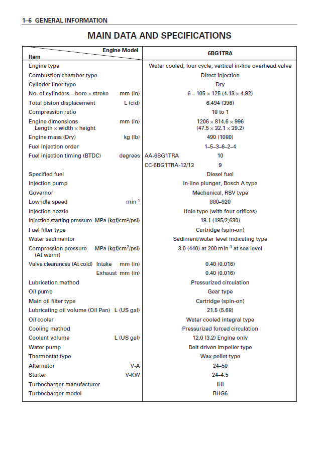 Manual de Servicios Motor Isuzu 6BG1 Relaciónado con Productos Hitachi