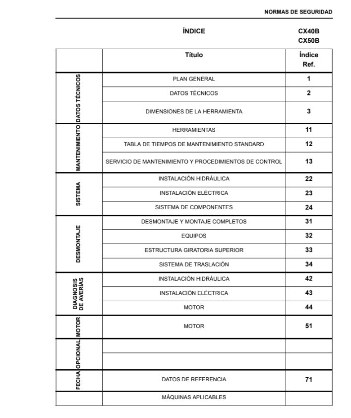 MANUAL DE SERVICOS MINI EXCAVADORA CX40B CX50B