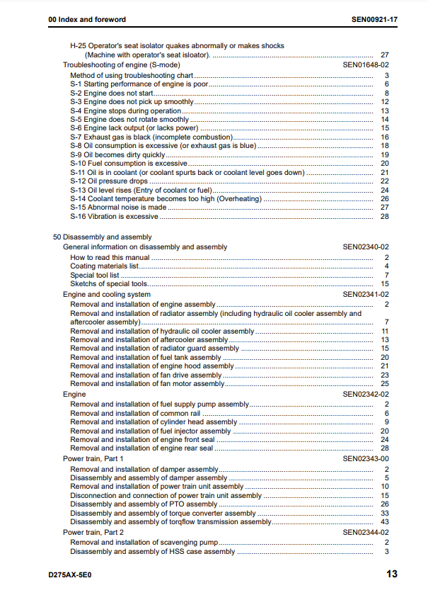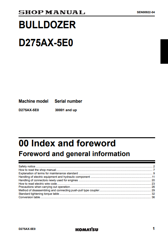 Manual de Taller Bulldozer Komatsu D275AX-5 Japón TIER3 SN 30001-UP