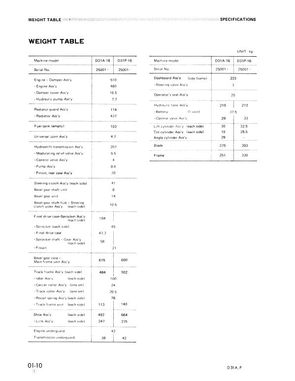 Manual de Taller Bulldozer Komatsu D31A-16 , D31P-16 S.N 25001-UP
