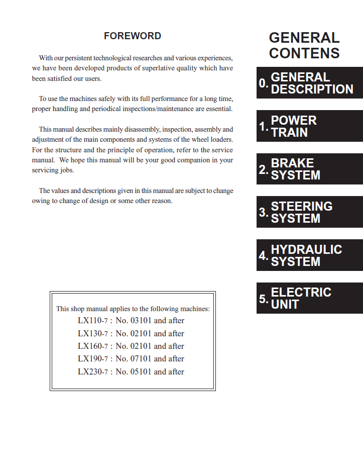Manual de Taller Cargador Hitachi LX110-7, LX130-7, LX160-7, LX190-7, LX230-7