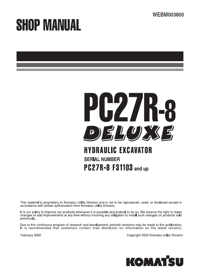 Manual de Taller Excavadora Hidraulica Komatsu PC27R-8 Deluxe - F31103