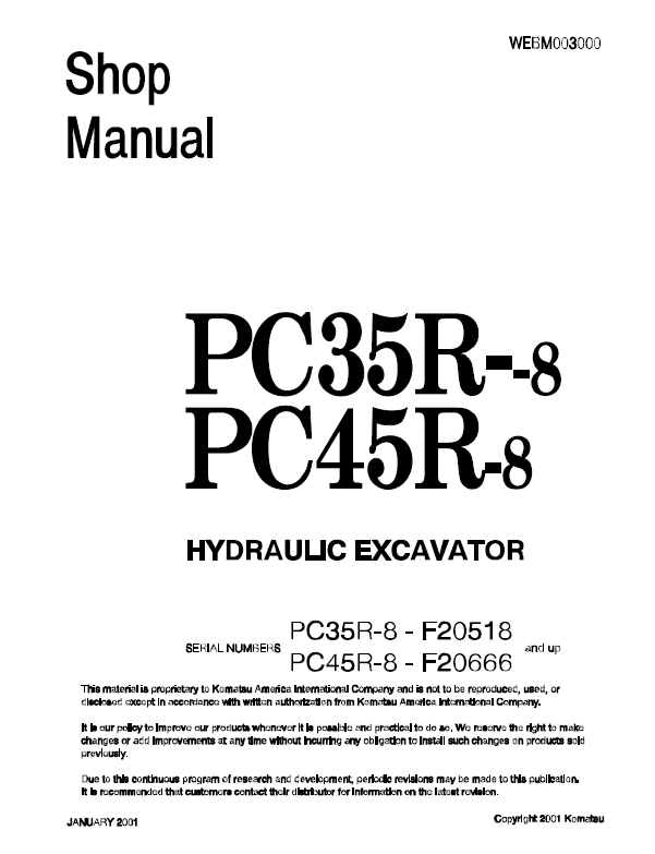 Manual de Taller Excavadora Hidraúlica Komatsu PC35R-8 - F20518, PC45R-8 - F20666