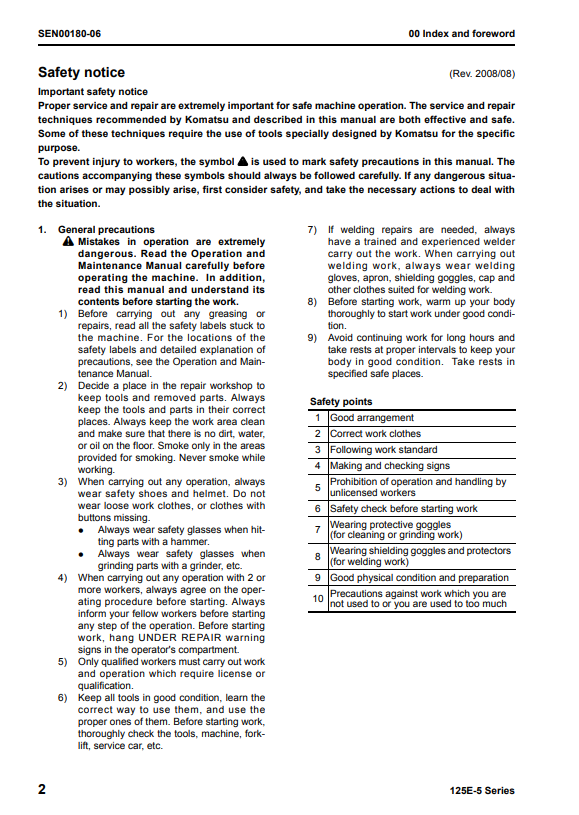 Manual de Taller Motor Komatsu 125E-5 Series