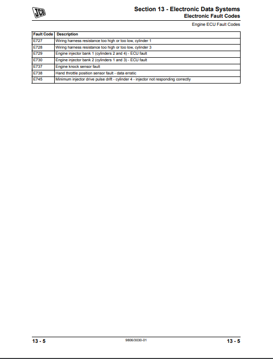 Manual Explicación Códigos de Falla de la ECU del motor JCB