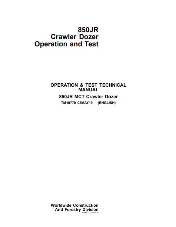 Manual Operación y Prueba Bulldozer John Deere 850JR