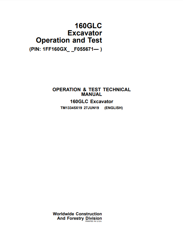 Manual Operación y Prueba Excavadora John Deere 160GLC