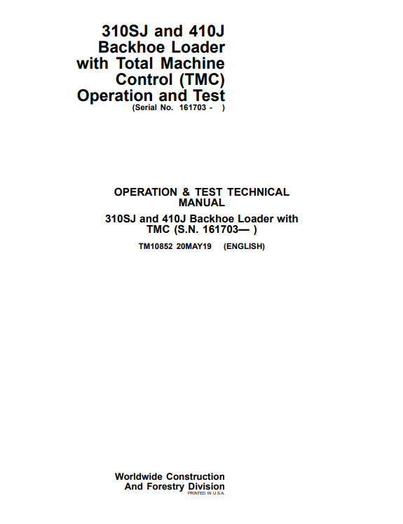Manual Operación y Prueba Retroexcavadora John Deere 310SJ - 410J