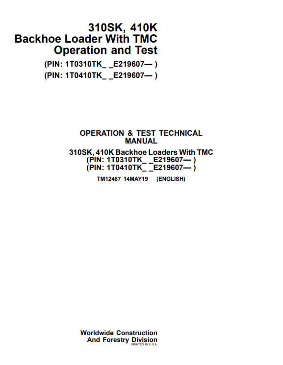 Manual Operación y Prueba Retroexcavadora John Deere 310SK, 410K
