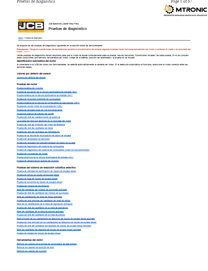 Manual Prueba de Diagnostico Retroexcavadora JCB 3CX