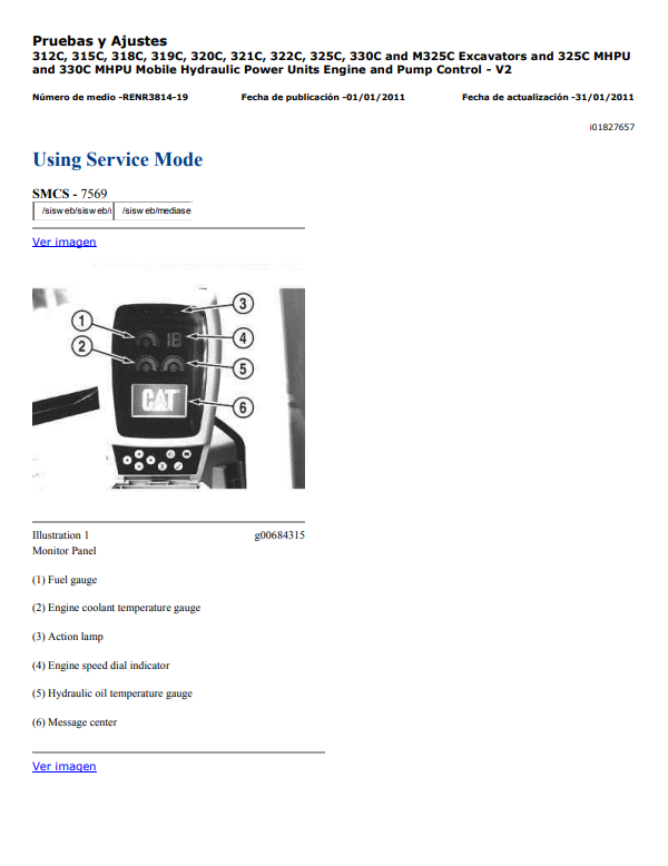 Manual Prueba y Ajuste Excavadora Caterpillar 312C, 315C, 318C, 319C, 320C, 321C, 322C, 325C, 330C